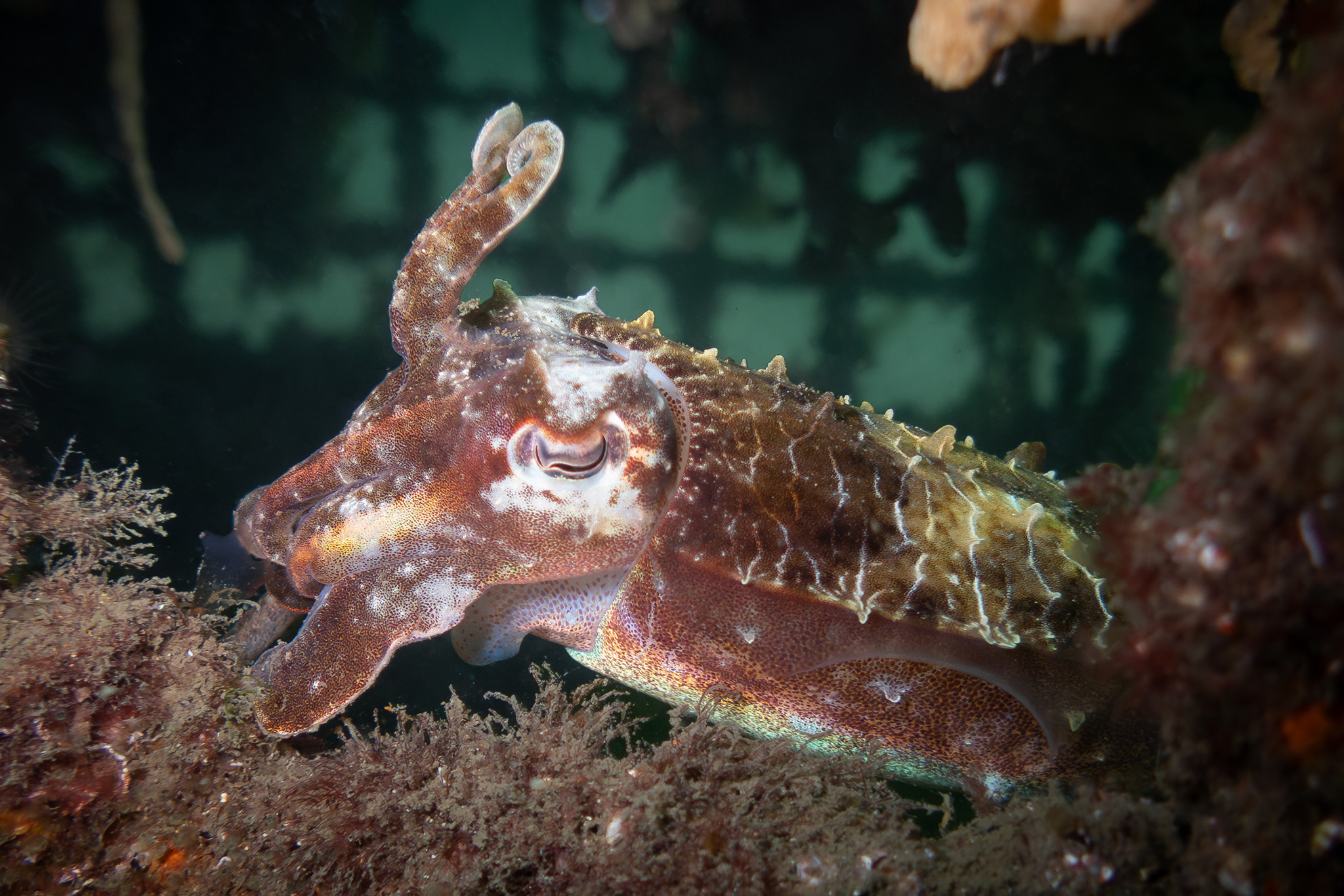 The water was a warm 21 degrees, and visibility was amazing for Clifton Gardens – easily 8 meters. We followed the usual dive plan, starting under the pilons before making our way out to the sunken statues, then back to the nets, before heading for shore. And we saw it all – seahorses, octopus, squid, cuttlefish, blennies, goat fish, bream, leatherjackets, and so much more.